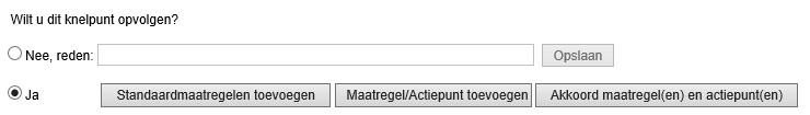 1.Indien u een knelpunt niet wilt opvolgen kiest u voor Nee, reden: