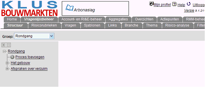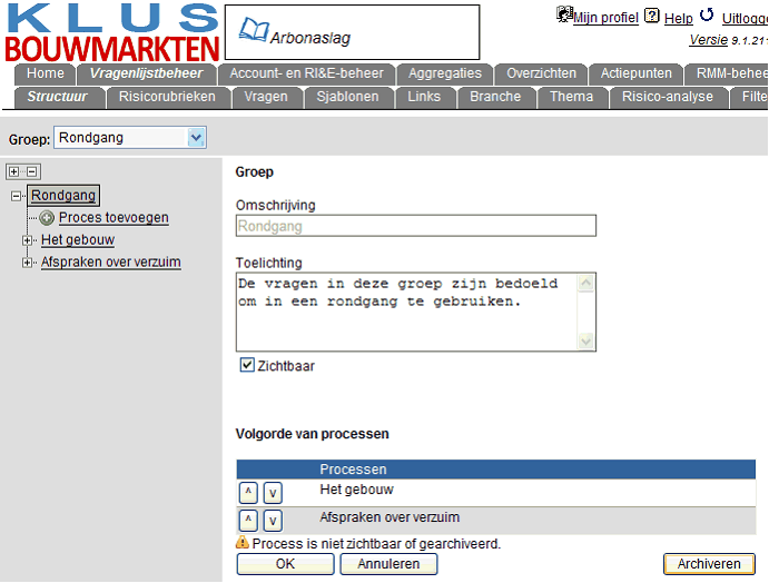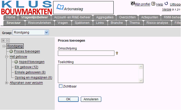 5.Typ de naam van het proces in, bijvoorbeeld Beleid en typ een helptekst/toelichting (helpt de persoon die in een RI&E de vragen moet.selecteren);