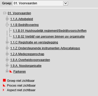 3.Klik op het plusje naast het Proces waar het aspect onder gekoppeld is.