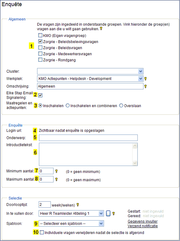 Voor het uitvoeren van een enquête dient u de volgende handelingen uit te voeren: