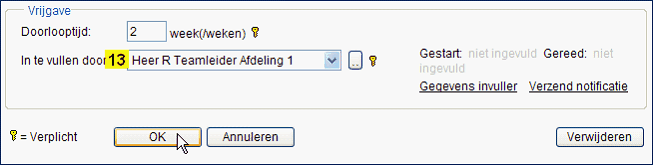 4.Selecteer de naam van de persoon die de onderwerpen mag selecteren bij Selectie – In te vullen door;