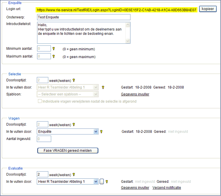 4.Wanneer de selectie voor de enquête is uitgevoerd, wordt onder andere hier het adres getoond waar de enquête te benaderen is.