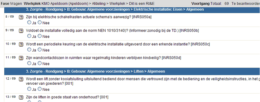 •Klik op Invullen (onder de kolom Vragen). U treft hier het overzicht met te beantwoorden vragen.