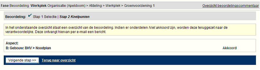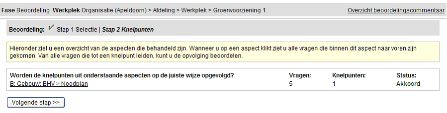 << Klik voor de index >> Navigatie: Gebruiker > Beoordeling > Beantwoorde vragen en aanpak van de knelpunten > Afronding Stap 2 beoordeling |